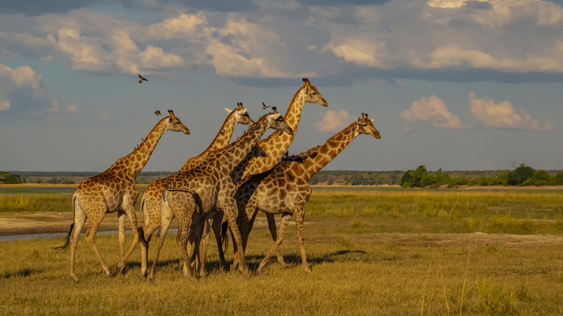 against the golden glow of the African sunset.